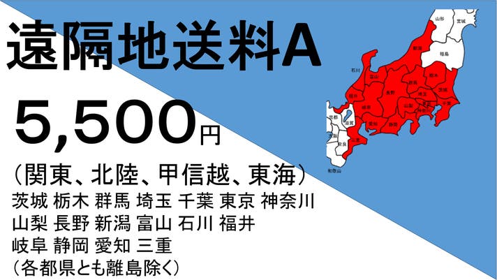 ・関東、甲信越、北陸、東海地方へのお届けは、別途5,500円が発生します。