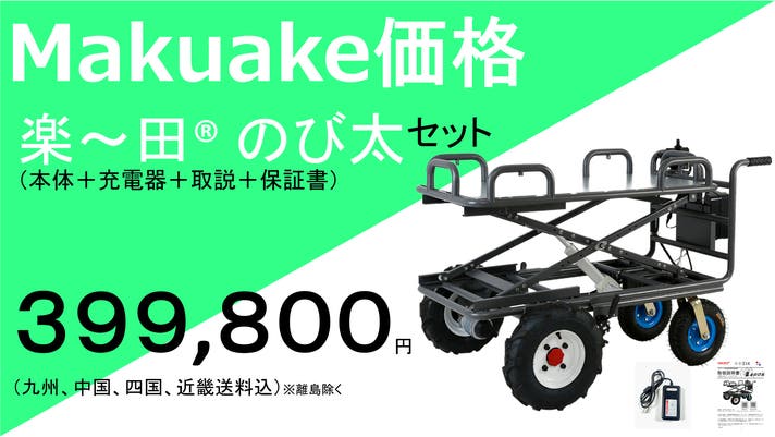 また、商品名の「楽~田®」は、弊社代表が、上記の「夢」をかなえるために自信を持ってお勧めできる電動運搬車等に用いる商標です(商標登録第6802594号)。