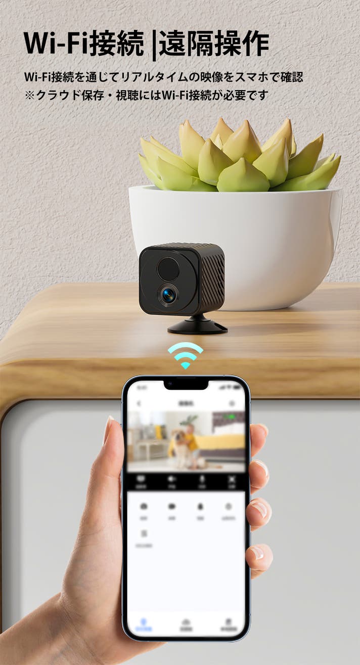 ※クラウド保存・視聴にはWi-Fi接続が必要です。設置の際には通信環境の整った場所にカメラを設置することをおすすめします。