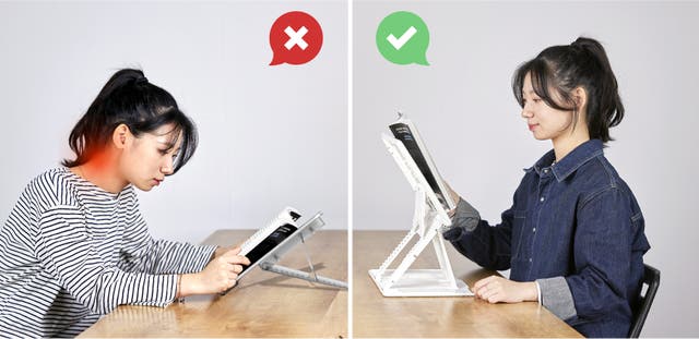 スタンドの高さは使用する人の目の高さに合わせ、肩や首の負担を軽減し、快適な環境を整えてくれます。