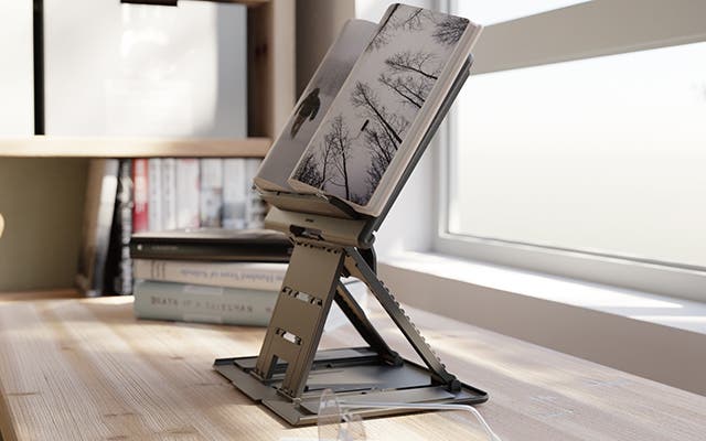 CAMINOはブックスタンドはもちろん、PCやタブレットを置いてお仕事や映像を見る際にも目線に合わせて快適な高さに調節することができます。