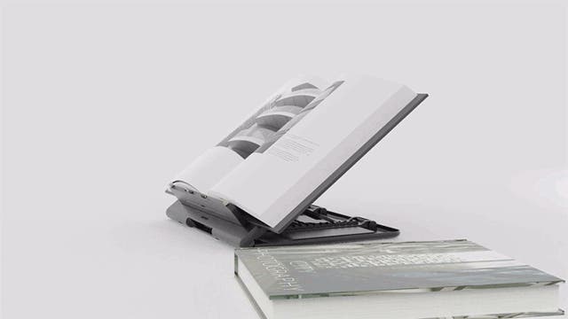 内部にスプリングが装置されており、分厚い本を置いて厚みに合わせて置くことができます。