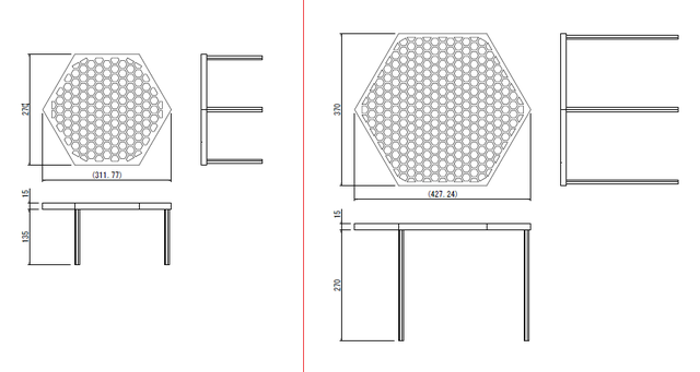 ハニカムファイヤーテーブルの「ハニカム」の意味は蜂の巣。盤面の形状だけでなく、盤面に空いた穴、脚となる棒も六角柱を使用したこだわりっぷり。