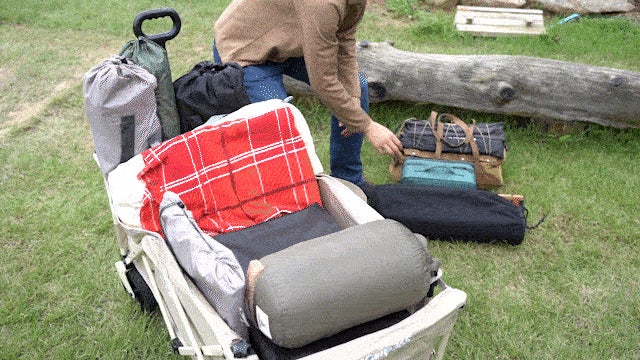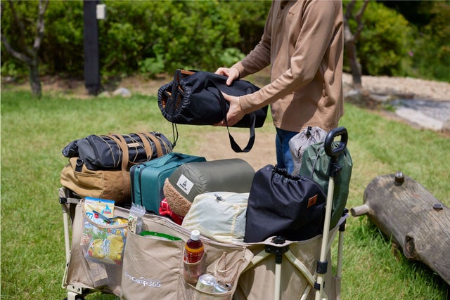 テントからチェア、寝袋、料理道具まで重いキャンプ用道具も一つに全部まとまります!