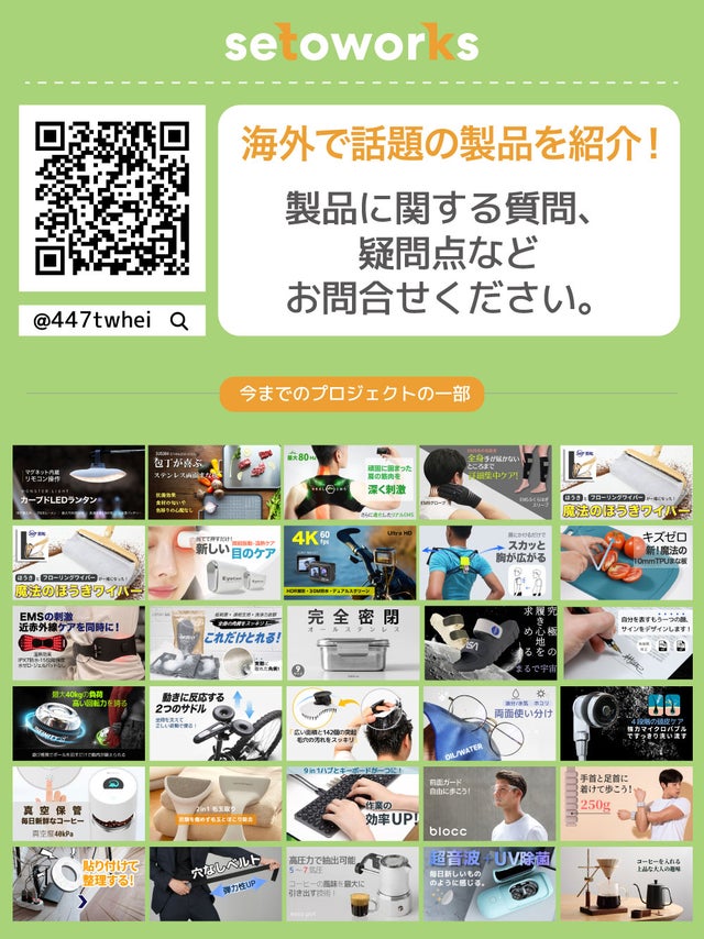 setoworksは日本の新しい製品を外国にいち早く紹介する事業を始め、海外の新しい商品や直接企画した多様なプロダクト製品を日本国内に紹介する事業を展開しています。