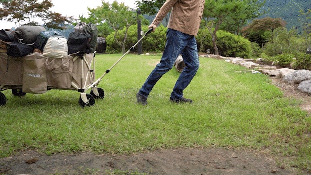 きっと160㎏までの重さの荷物はめったに乗せることはないと思いますが、キャンプ365のキャリーワゴンは何を乗せても、誰でも軽々に一気に運べます!