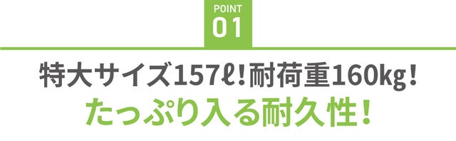 横95cm・縦46cmで157ℓの大容量でしっかりたっぷり、何でも入ります!
