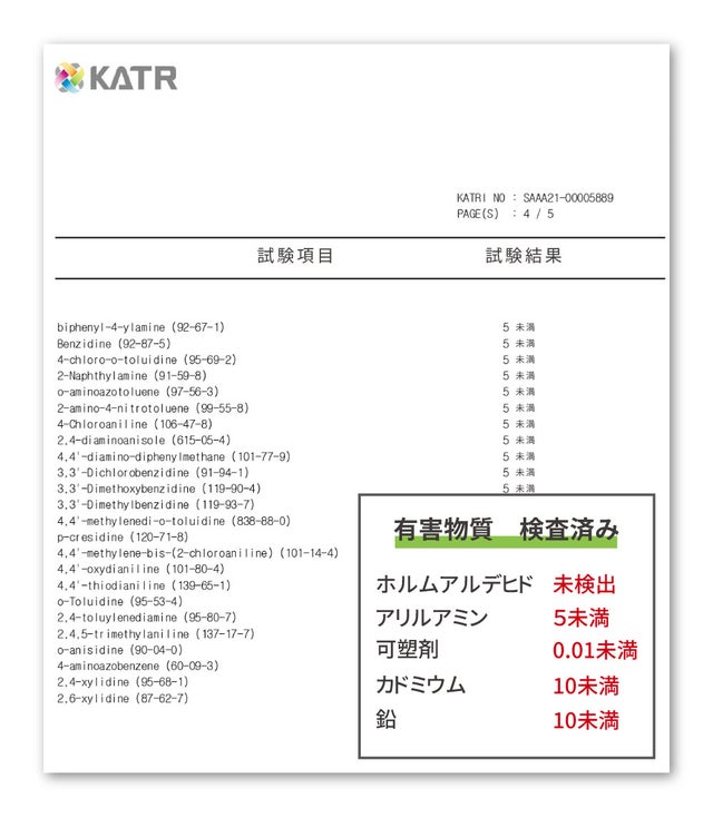 布部分は有害物質の検出テストを行い、有害物質が基準値未満であることが分かりました。