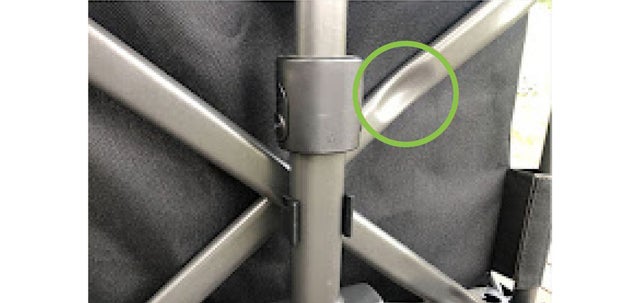Q. ハンドルの部分の少し上の金具が凹んでいますが、欠陥品ですか?