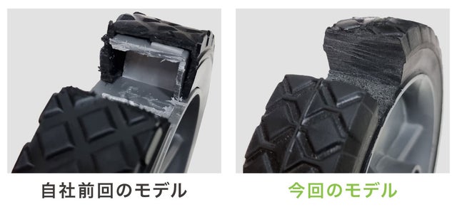 このようにプラスチック製のタイヤはすぐ壊れてしまうのに対し、ゴム製のタイヤは耐久性があることが分かりました!