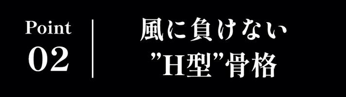 風にも負けないH型”骨格”で、雨天時や災害時のシェルターとしても活用できます。