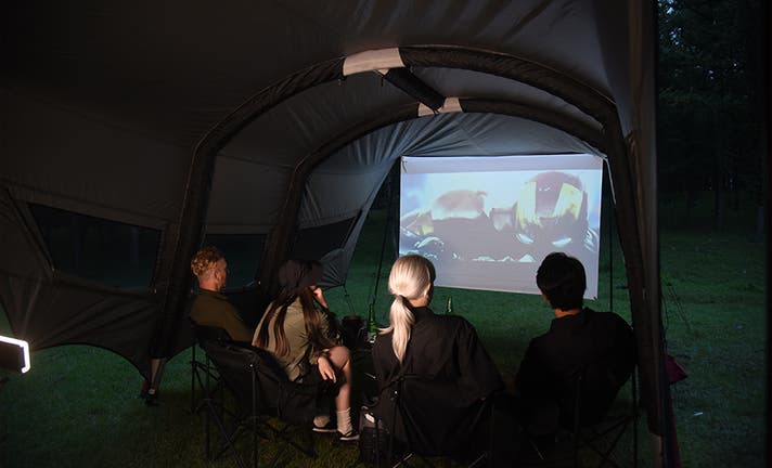 タープ内部に吊り下げるだけで、夜のキャンプサイトがシアターに変わります。
