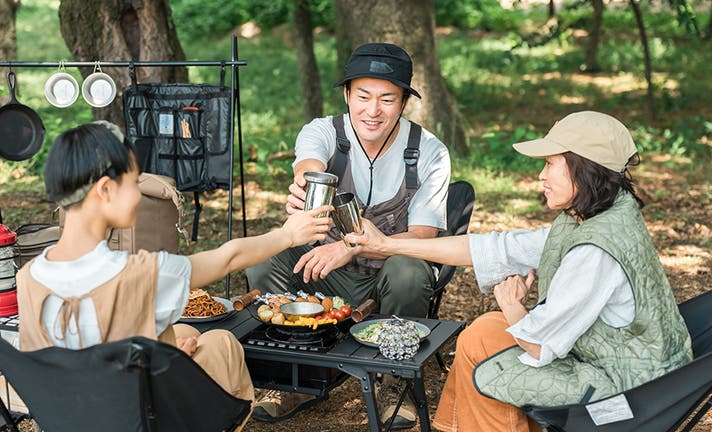 ハンドル付きのポータブル設計で、キャンプでも持ち運びやすく、1台で幅広いシーンをカバーします。