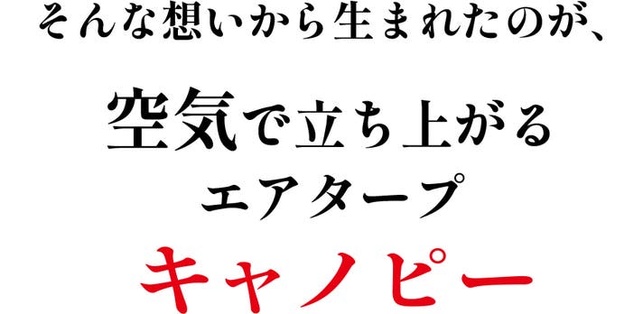 ※キャノピーとは英語で「天蓋・ひさし」を意味します。エアタープ・キャノピーは電動ポンプを使用し、時間をかけずにゆとりある大空間を作り出すエアタープです。
