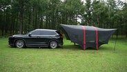 キャンプ時にはリビングとして、車中泊では寝室との間をゆるやかにつなぐ “もうひとつの居場所”をつくり出します。