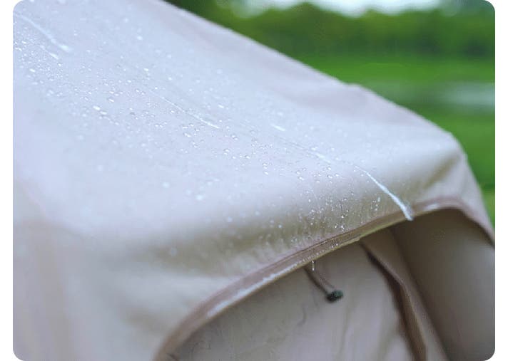 使用されたPU2000+防水生地はは強力な防水力を持ち、2000mm以上の水圧にも耐えられるため、野外での急な降雨にも心配ないです。
