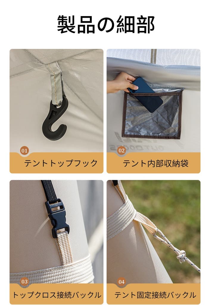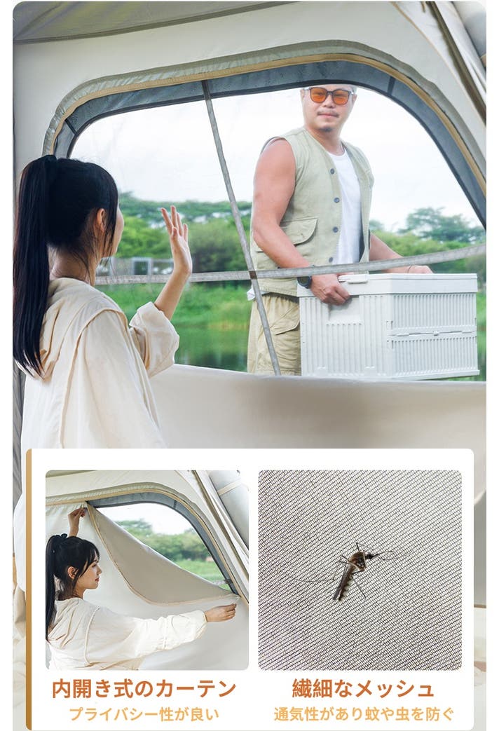 これにより、テントの中は常に快適な環境を保つことができ、キャンプ中の憩いの場として最適です。