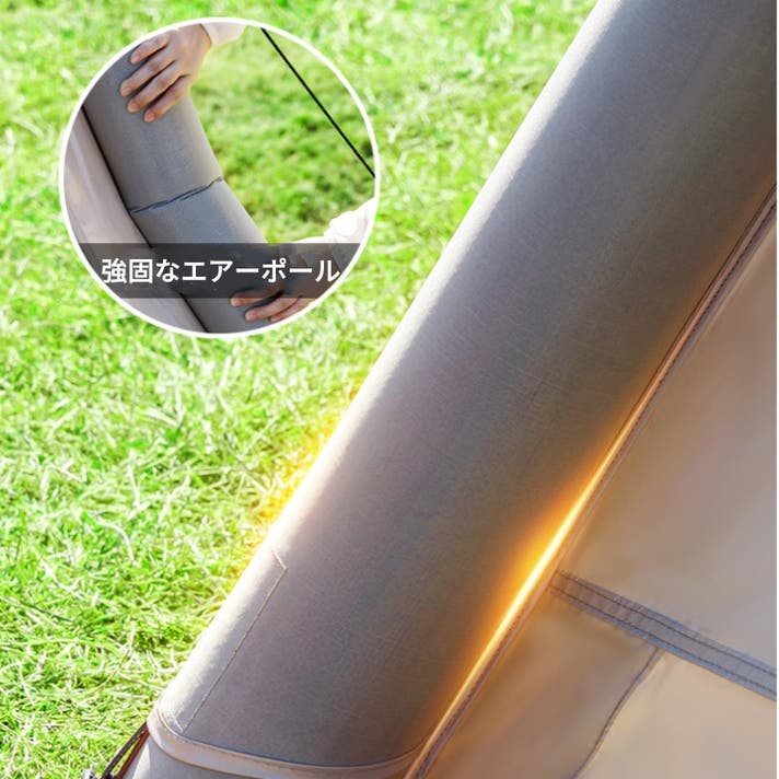 金属の骨組みがなくても、充満したエアー柱がしっかりとテントの形状を保持し、驚くほどの安定感を実現。