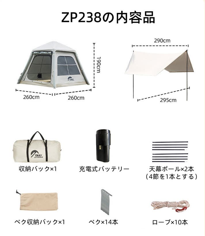 【早割】31%OFF TAILI電動エアテント(ZP238)×1