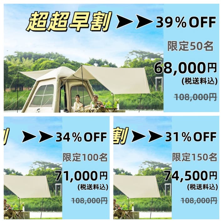 リターン品の配送が完了するまで、弊社は「TAILIエアテント」の日本における独占販売権を有する正規代理店です。詳細に関しては、ページ下部のリスク&チャレンジをご確認ください。