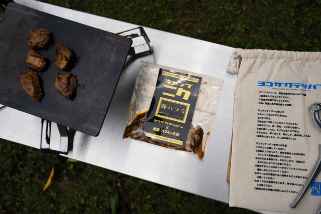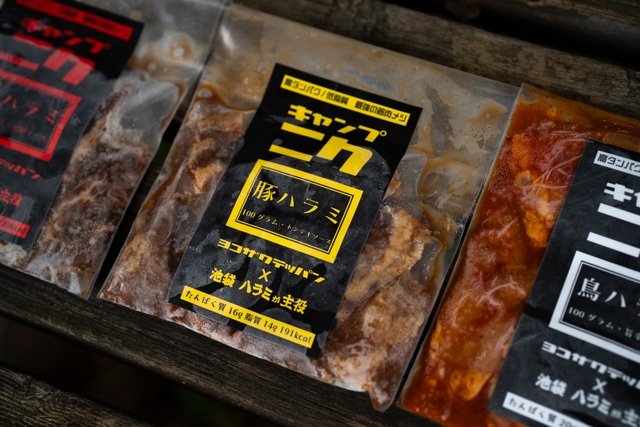 「池袋 ハラミが主役」は、牛肉、豚肉、鶏肉、それぞれのハラミをキャンプめしとして食べてもらえないか、と冒険用品とコンタクト。同じ思いであることから、即決でコラボしてキャンプめしに特化したものを作ろうということに。焼き肉用ハラミ肉をアウトドアで扱いやすいようにパッケージング。持ち運びやすく、調理も簡単に、そしておいしい! をコンセプトに始まったプロジェクトとなります。