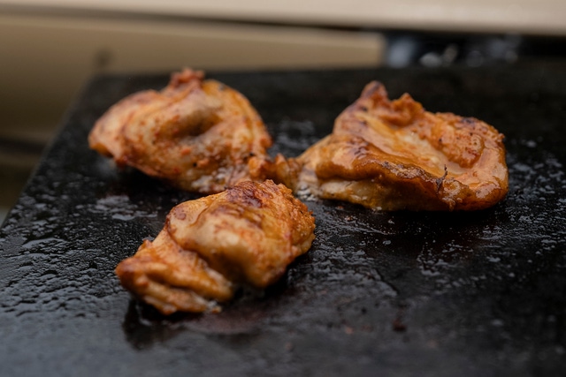 3種のハラミの中で一番ヘルシー。ピリリと辛味を含んだソースと脂が少ない鳥肉との相性はバツグンです。タンパク質 20グラム、脂質 3グラム 120カロリー(100グラム)(特定原材料8品目:なし)