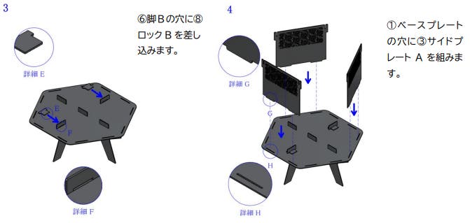 なお、 本製品には工具等は付属しておりませんので、キャンプ時に必要な道具はお客様ご自身でご準備いただけますようお願いいたします。 取扱説明書の指示に従って組立てを行い、保護手袋をご使用ください。尖った部分などでけがをしないようにご注意ください。 地面が平らなところでご使用ください。 使用後は熱くなっていますので、冷却後に収納してください。