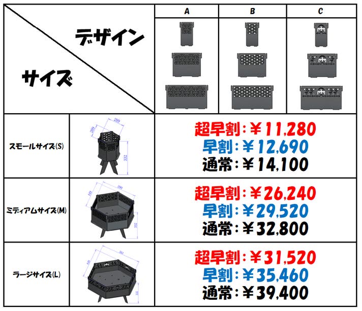 ・焚火台-ラージサイズ×1点(デザインを3種類からお選びください)