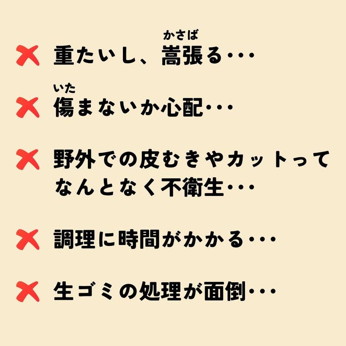でも、アウトドアでの野菜の下ごしらえって、ビミョーに面倒・・・