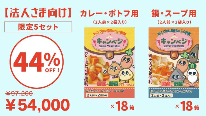 「カレー・ポトフ用(2袋入)」×18箱「鍋・スープ用(2袋入)」×18箱
