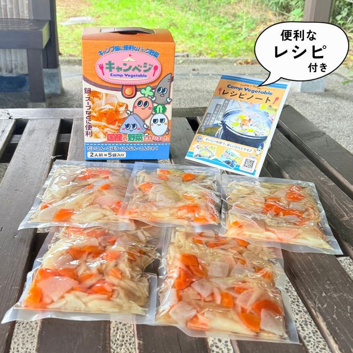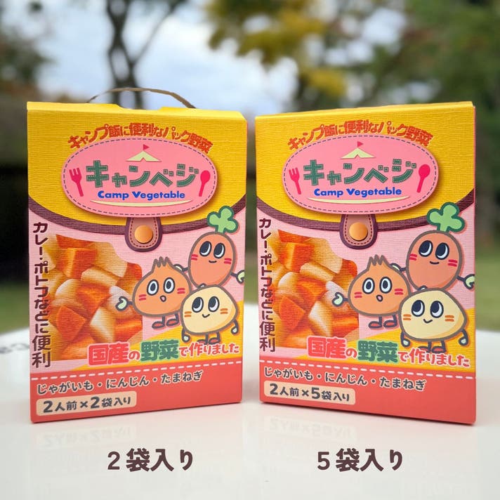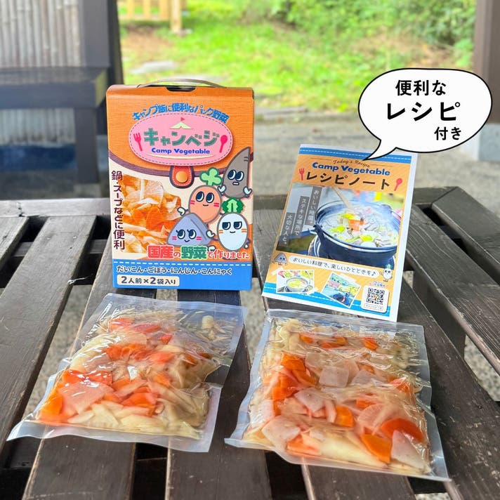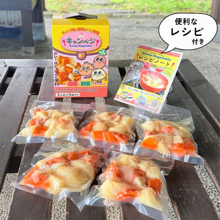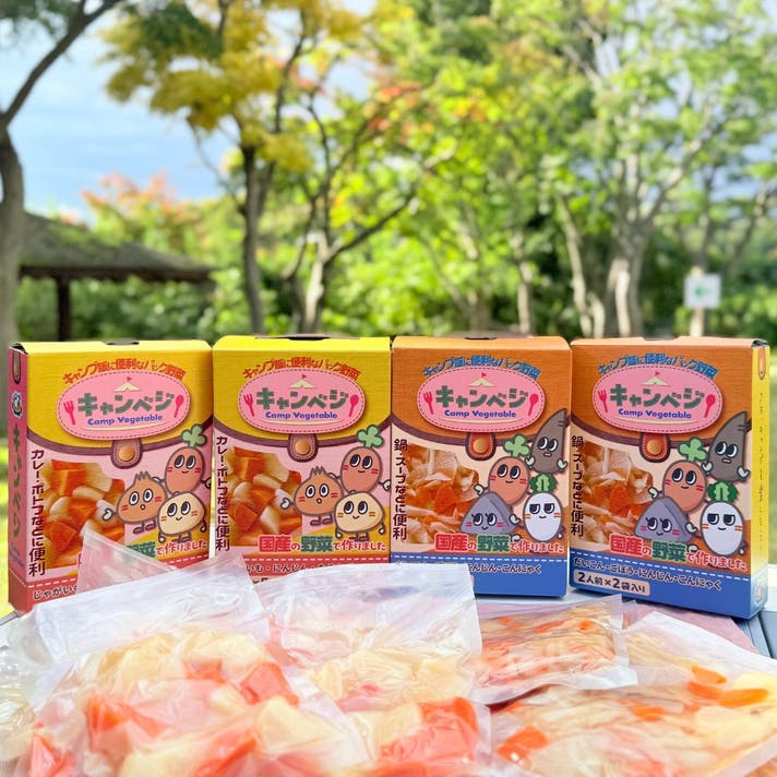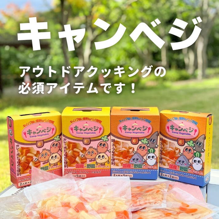 「キャンベジ」は、キャンプ料理を「もっと手軽に」「もっと楽しく」するために開発された、下ごしらえ済みの国産パック野菜です。