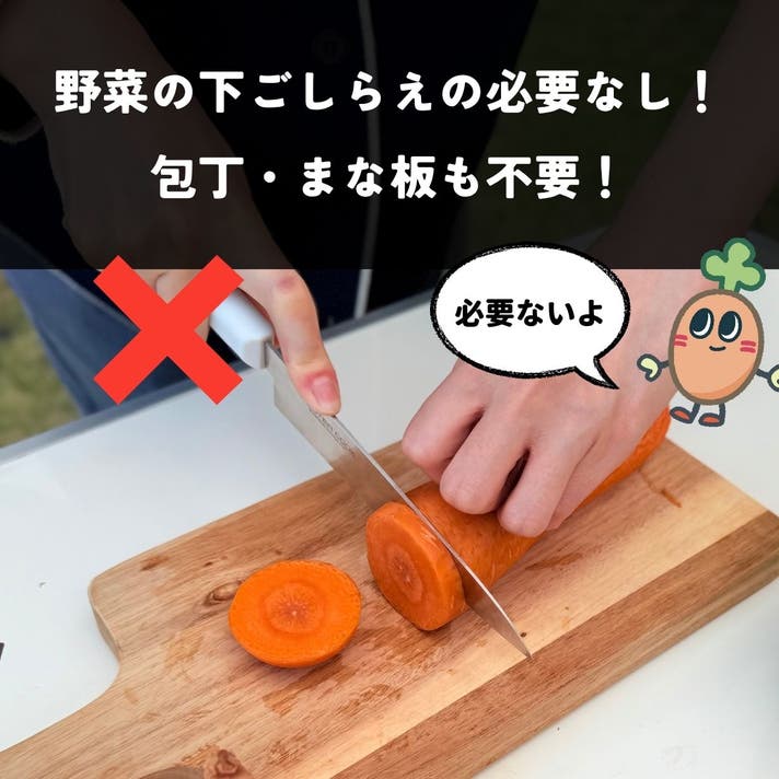 - 老舗の野菜屋さんが「アウトドアシーンでも野菜をおいしく食べてほしい」という想いで開発しました。