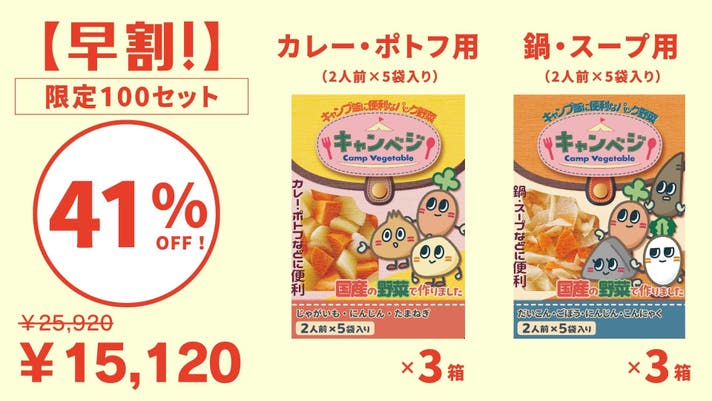 【早割!】「カレー・ポトフ用(5袋入)」×3箱「鍋・スープ用(5袋入)」×3箱