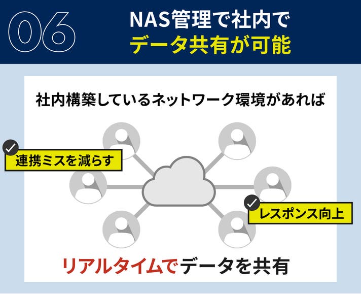 社内構築しているネットワーク環境があれば、リアルタイムでデータを共有できます。連携ミスを減らし、作業のレスポンスを向上することができます。