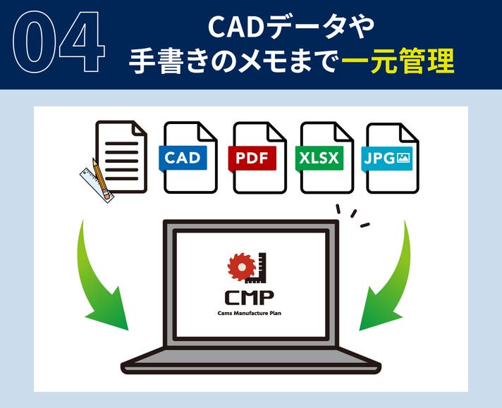 CAD・PDF・手書きメモ・エクセル・写真などのデータをまとめて保存できるから情報の整理や共有がスムーズに