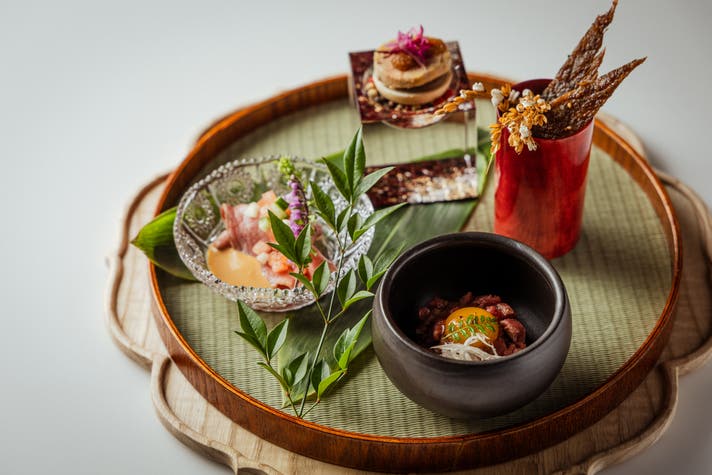 和牛を様々な調理技法で仕上げた、四季を感じる冷前菜盛り合わせ。