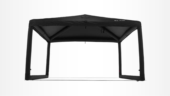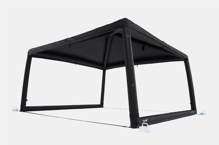 空気を入れるだけで自立する4mエアタープです。簡単かつスピーディーに設営でき、天井高2.85mの開放感をお楽しみいただけます。ブラックピグメントコーティングにより、強い日差しや雨も心配いらず、オールシーズン快適なキャンプを実現します。