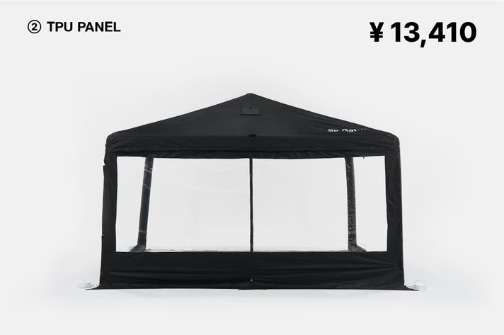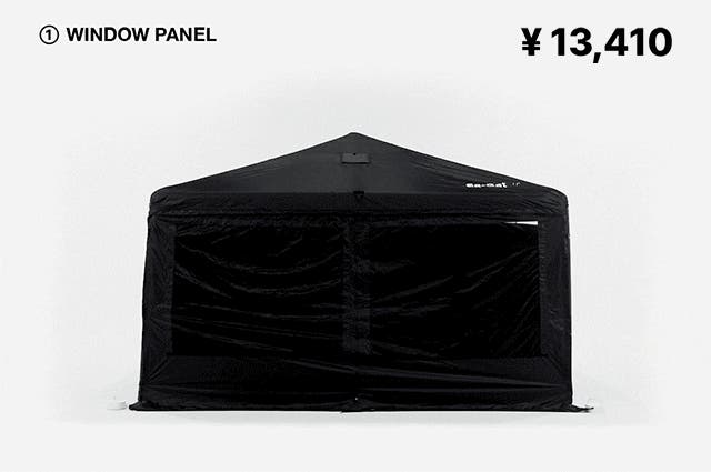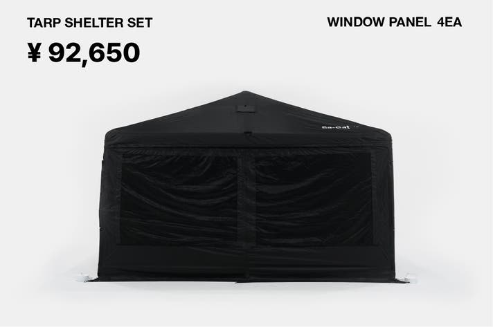本体とウィンドウパネル4個のセットです。基本的なシェルター機能はもちろん、四方を覆ってプライバシー確保にも最適。スキンとメッシュ窓が一体になったウィンドウパネルは、天候に合わせて開閉できるため、汎用性抜群です。