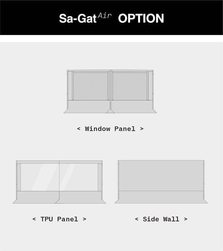 Sa-Gat Air専用のウィンドウパネルは、メッシュ窓とスキン窓を一体化し、通気性と開放感の両方を兼ね備えています。スキンは状況に応じて開閉でき、天候に合わせた換気調整が可能です。ダブルジッパー方式によりTPUパネルの追加装着も可能で、メッシュ・スキン・TPUをシーンに合わせて柔軟に使い分けることができます。