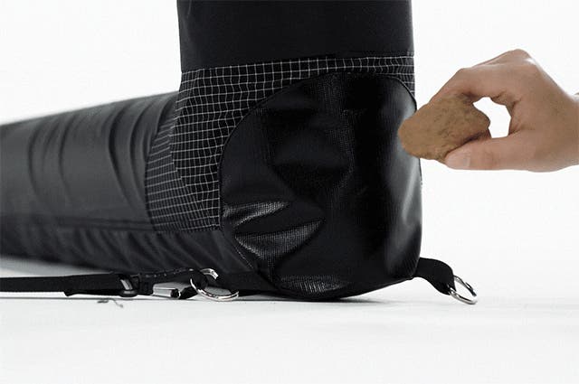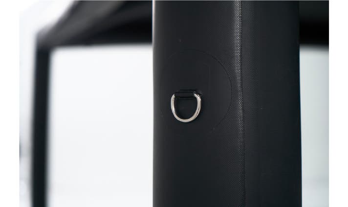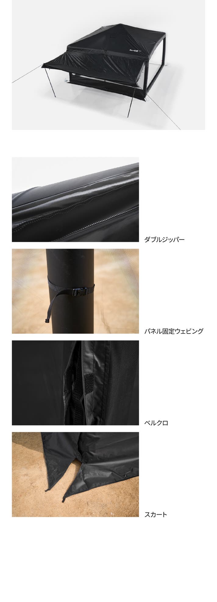 地面に接するエアビームを包むカバーが付属しています。高強度ダイニーマ糸を使用した生地と厚手のPVCターポリン生地で補強されており、粗い地面でもエアビームをしっかり守ります。
