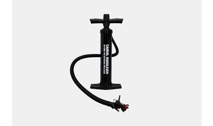 製品には手動エアポンプが付属しており、バッグに一緒に収納可能です。ポンプを押すときだけ空気が注入されるワンアクションタイプです。