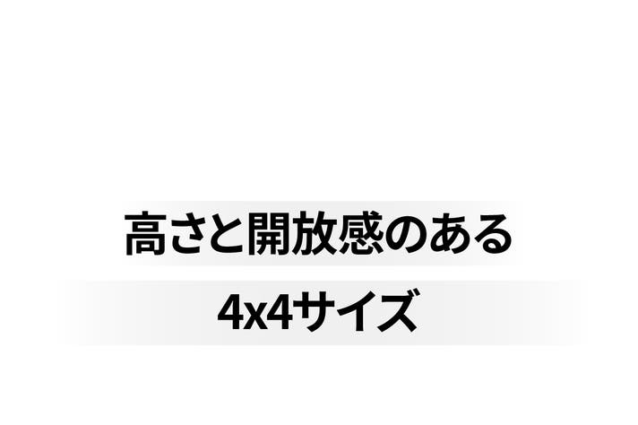 - 幅4mの大型タープで、高い天井と圧倒的な開放感を実現。