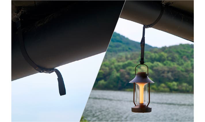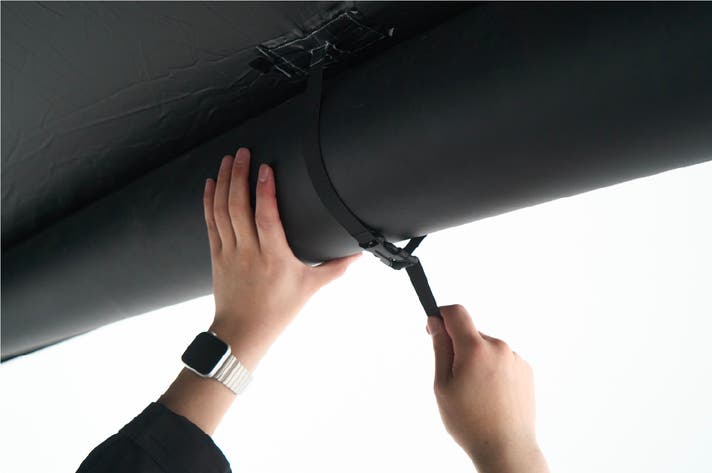 天井スキンとエアビームをつなぐ固定ウェビングが施されており、スキンをより安定して固定できます。各ウェビングの端にはフックが付いており、ランタンなど軽量の装備を掛けることも可能です。合計9箇所のウェビングポイントがあり、さまざまな用途に活用できます。