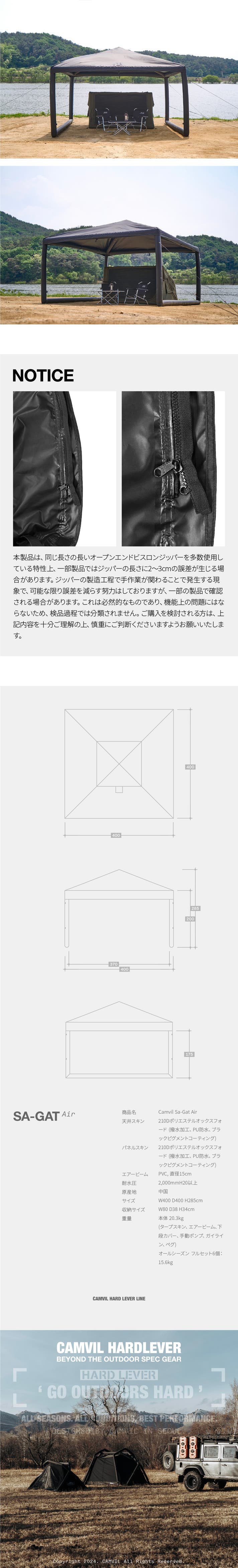 「Makuake(マクアケ)」は、実行者の想いを応援購入によって実現するアタラシイものやサービスのプラットフォームです。このページは、 プロダクトカテゴリの 「天候で迷わないキャンプへ。空気で変幻自在、CAMVIL Sa-Gat Air。」プロジェクト詳細ページです。