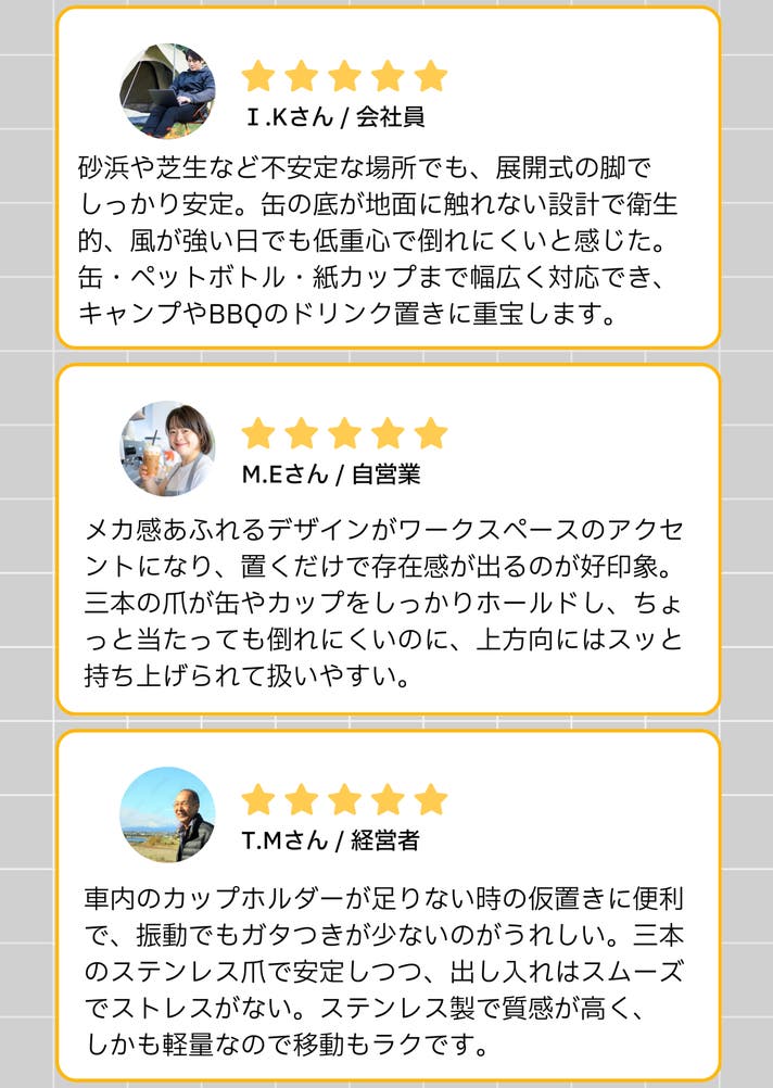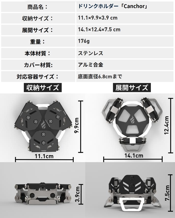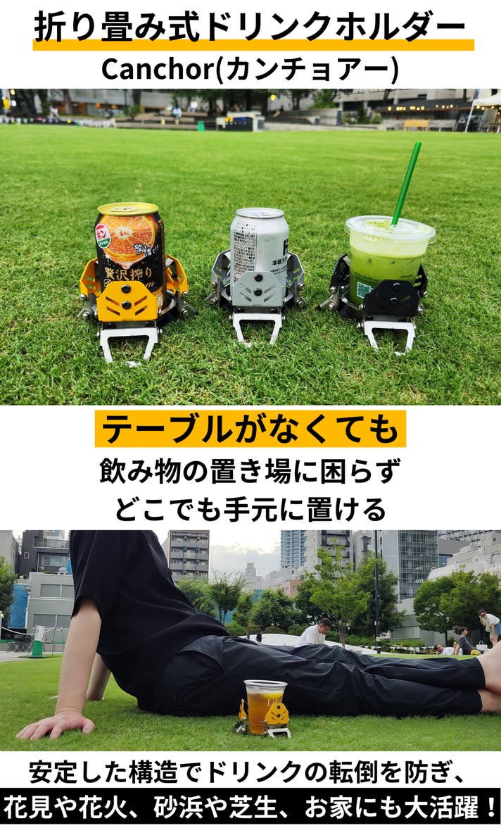 ドリンクホルダー「Canchor」は、展開すればすぐに“置ける場所”となり、畳めばポケットサイズに収まる頼れる相棒です。
