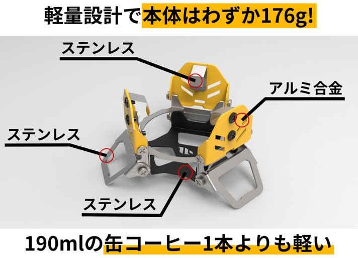 本体は頑丈なステンレス製でありながら、重さはわずか176gです。
