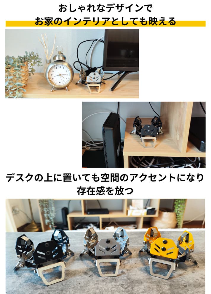 A:はい。デスクや作業台に置いて、コーヒーカップなどの転倒防止に有効です。メカ感のある外観で、インテリアとしても映えます。