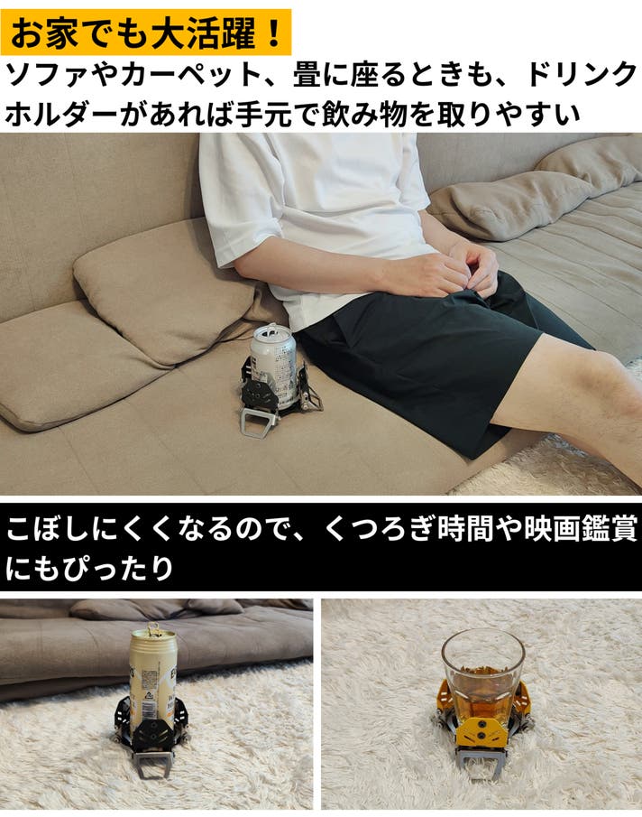 ソファやカーペット、畳の上でも、ドリンクを手元に置けて、すぐ手に取れます。
