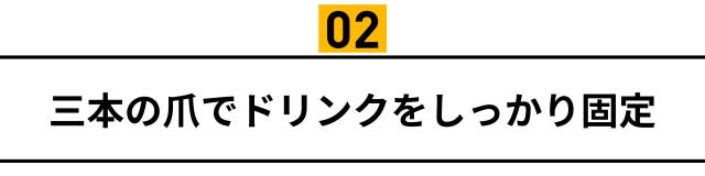 厳密に計算された三点の爪が横方向の衝撃に強くドリンクを確実に保持し、上からは軽い力でスッと取り出せます。