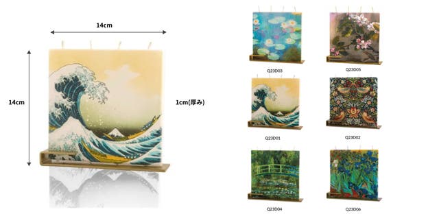 今回のプロジェクトは美術館にあるようなアートをキャンドルに描き、手軽にご自宅でお楽しみ頂きたいという思いで取り組んでおります。職人が一つ一つ丁寧に書き上げたデザインを一度手にとっていただけますと幸いです。